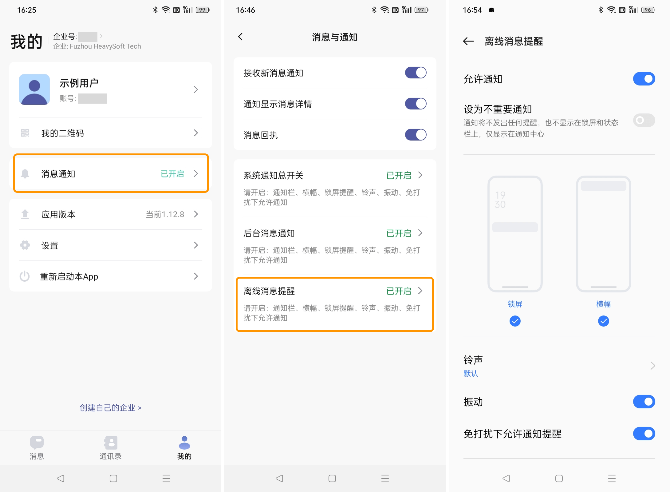 回到 我的->消息通知->点击“离线消息提醒”,将打开 App 在手机系统的“离线消息提醒”设置,请打开其中的所有提醒开关。