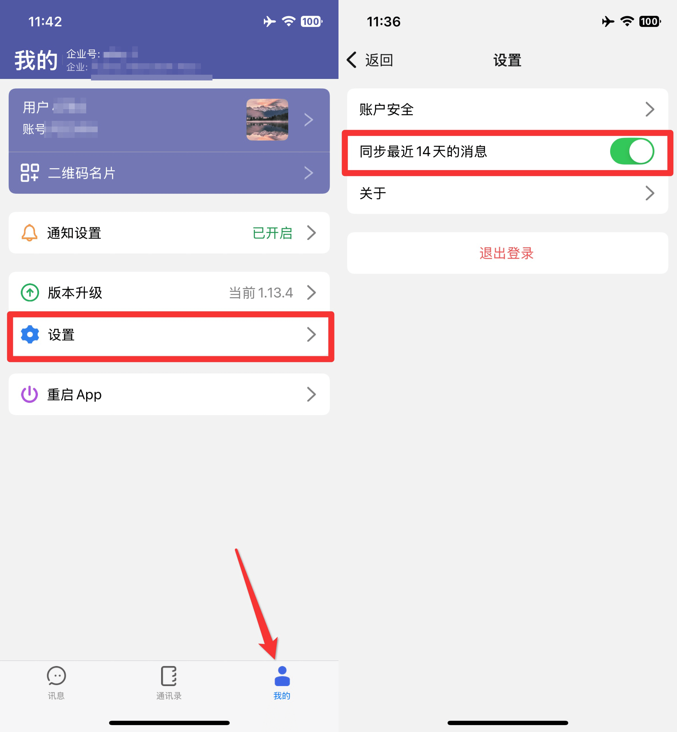 打开App -> 右下方我的 -> 点击设置 -> 开启同步最近 14 天的消息